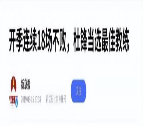参考资料:新京报《开季连续18场不败,杜峰当选最佳教练》
